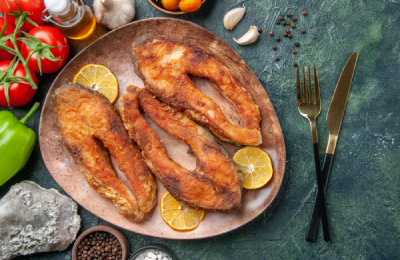 Fresh sea bass marinated in lemon juice and herbs, grilled to perfection.